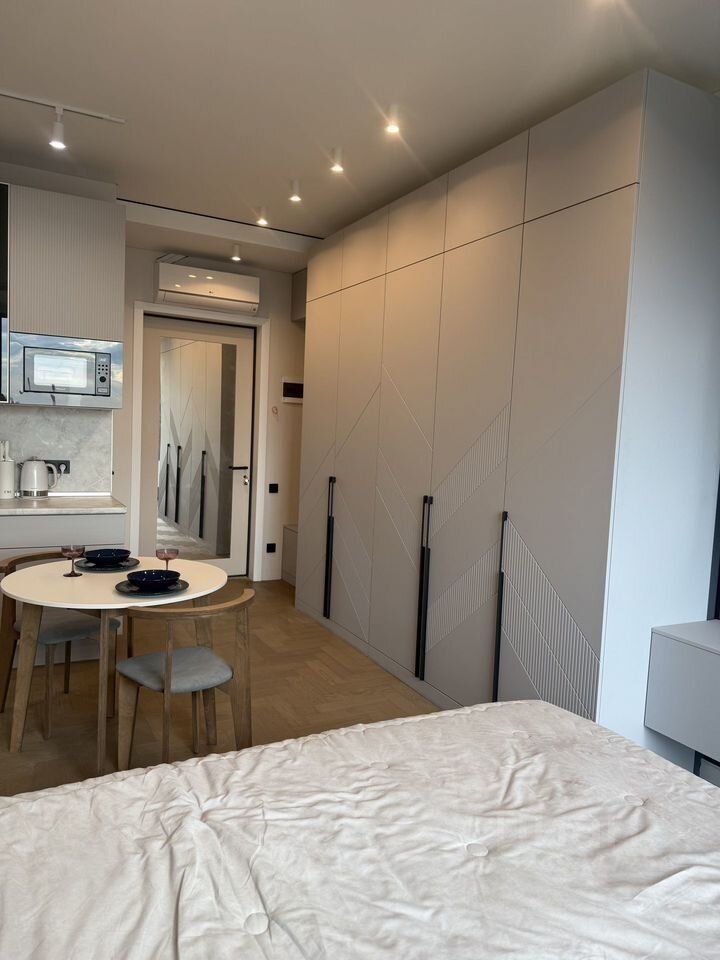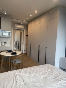 В студия находится в семейном ЖК Бизнес класса в пешей доступности к метро и развитой инфраструктурой.