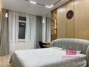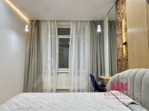 КВАРТИРА: 1-к 46 кв.м. с видом на тихую улицу (5-я магистральная). В квартире никто не проживал (только после ремонта). Дизайнерский ремонт. Стеновые панели с натуральным шпоном дуба, ясеня и пробкой, трековое освещение, декоративный свет, парящий потолок с подсветкой, скрытые двери. Теплые полы, карниз и кондиционеры с управлением по wifi. Двуспальная кровать с ортопедическим матрасом, туалетный столик, шкаф и 65 tv в комнате. Гостевой диван-трансформер , 50 tv, встроенная техника (Aeg, Bosch, Electrolux) на кухне. Душевая кабина, стиральная и сушильная машины (Bosch) в с/у. Система защиты от протечек, резервный проточный электроводонагреватель. Отдельная гардеробная, балкон.