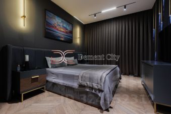 Функциональная планировка: Угловая гостиная совмещенная с зоной кухни и обеденной зоной, изолированная спальня, гардеробная комната, просторный холл, ванная комната, гостевой сан/узел, хоз/блок. Эксклюзивный Дизайнерский ремонт, качественные материалы, дорогая мебель на заказ! Система умный дом, шторы и блэкаут управляются с пульта, встроенная звуковая система, сплит/система, канальная вентиляция.