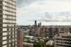 Сдаётся в аренду стильная видовая двухкомнатная квартира с дизайнерским ремонтом на 23 этаже с видом на реку. По адресу Шмитовский проезд, 39 к 8. Квартира расположена в новом доме 2023 года постройки. Жк Headliner. Общая площадь 45 кв м.