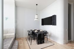 Квартира полностью готова к проживанию. В наличии вся необходимая мебель, современная бытовая техника: духовой шкаф, варочная панель, посудомоечная и стиральная машина, телевизор. Так же есть постельное белье и посуда. Установлен кондиционер. В уборной есть душевая кабина, гигиенический душ и ванна. Проведён интернет.