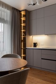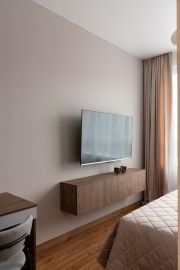 В квартире все спланировано и обустроено для комфортной жизни. Большое количество мест для хранения, вся бытовая техника: холодильник, плита, духовка, СВЧ, посудомоечная машина, чайник, стиральная машина с сушкой, пылесос, кондиционеры в спальне и на кухне, телевизор. Кровать с ортопедическим матрасом, вся мебель премиального качества. Есть необходимая посуда, столовые приборы и принадлежности для проживания.