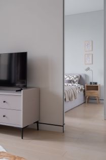Продумана каждая деталь для вашего комфорта и уюта. Современная функциональная мебель и бытовая техника: встроенная кухня, удобная кровать с ортопедическим матрасом, диван-трансформер, который превращается в полноценное спальное место. Рабочая зона с эргономичным компьютерным столом. Проведен высокоскоростной интернет, установлены 2 кондиционера. Предусмотрены разные сценарии освещения и много удобных мест хранения.