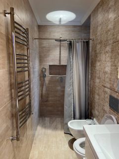 Квартира полностью обставлена необходимой мебелью: на кухне и в комнате всё готово для комфортного проживания. В вашей ванной комнате - современный открытый душ с щелевым трапом с окном, что добавляет атмосферы и удобство в повседневной жизни. Из техники в квартире имеются кондиционер, холодильник, стиральная машины - всё, что нужно для удобства и комфорта.