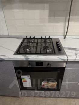 Кухня оснащена посудомойкой, плитой, духовкой, холодильником.