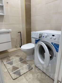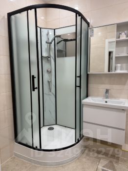 В ванной комнате установлены душевая кабина и стиральная машина.