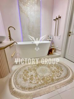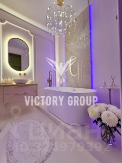 В квартире есть вся необходимая мебель и бытовая техника для комфортного проживания. Здесь реализованы современные дизайнерские решения: обои от Dolce & Gabbana, освещение от фирмы Sagarti, кровать с системой "эргомоушен" (с массажем), система "умный дом".