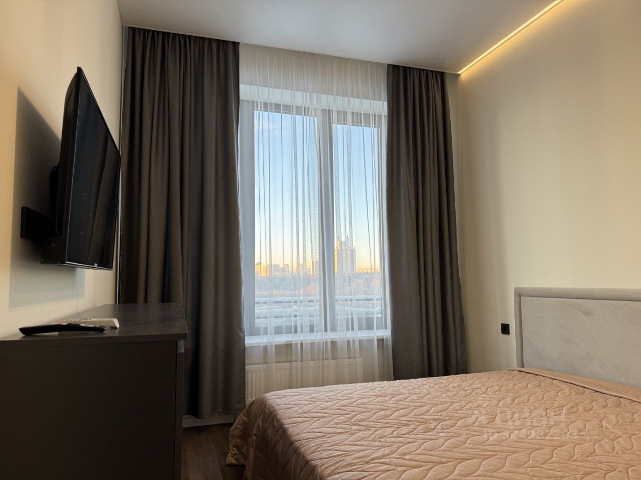 В квартире недавно сделан ремонт. Присутствуют все необходимые условия для комфортного проживания: высокие потолки, кухня, оборудованная бытовой техникой, в т. ч. микроволновой печью, духовым шкафом, посудомойкой и холодильником, утюг и гладильная доска, система кондиционирования, телевизоры в гостиной и спальне, стиральная машина, мебель, включая двуспальную кровать, раскладываемый диван, и т. д.