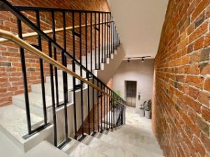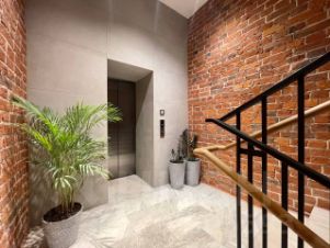 Красивое здание в стиле лофт с фасадами из красного кирпича и архитектурной подсветкой. Лобби и места общего пользования выполнены по авторскому проекту, стены украшены деревянными панелями. Мраморная лестница с кованными перилами, новые лифты.