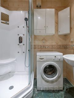 Совмещенный санузел, отделан плиткой по евростандарту, установлена импортная душевая кабина и проточный водонагреватель (очень удобно при отключении горячей воды).