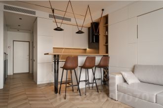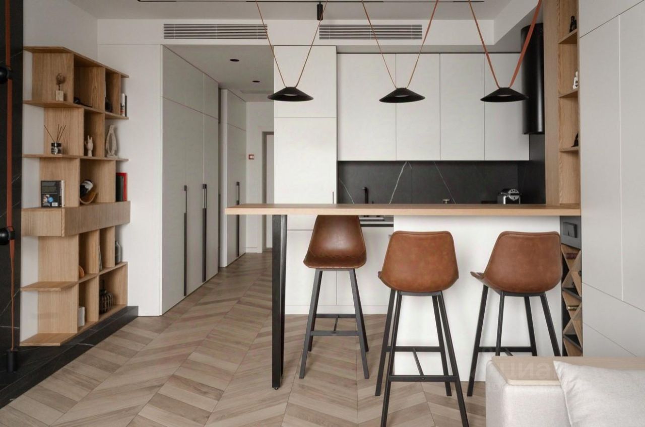 Квартира оборудована всей необходимой мебелью и техникой для комфортного проживания: кондиционер, стиральная и посудомоечные машины, холодильник, телевизор и система Умный дом.