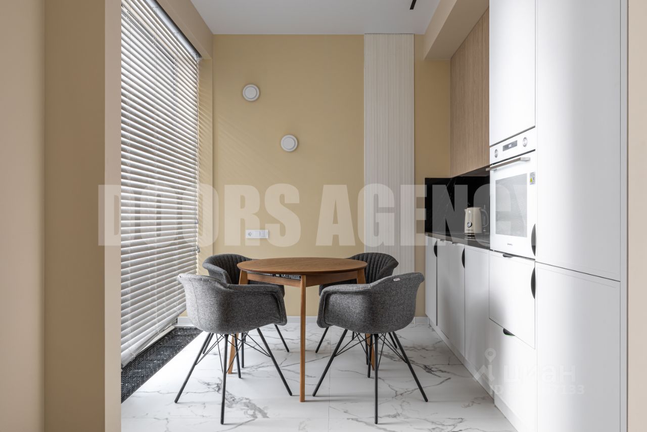 Планировка: кухня с панорамным видом на двор, гостевая зона совмещена со спальней. Совмещенный санузел с душевой кабиной и ванной. В квартире имеется всё необходимое для комфортного проживания, в том числе: стиральная машина с функцией сушки, посудомоечная машина, телевизор а также приточно-вытяжная система кондиционирования.
