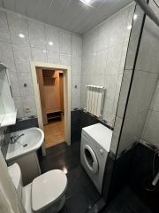Ванная комната совмещенная, оформлена в современном стиле. Установлены все необходимые сантехнические приборы и стиральная машина.