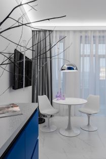 -Квартира оснащена заказной встроенной мебелью в потолок с большим количеством мест хранения.