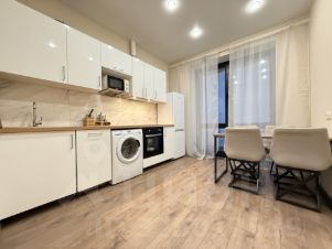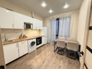 В квартире есть вся необходимая мебель и техника (включая посудомоечную и кондиционер). Кухня изолирована от комнаты.