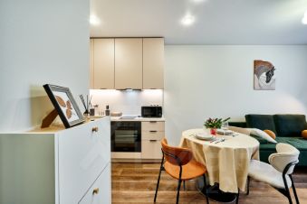 Вся необходимая техника: Холодильник, стиральная машина, посудомоечная машина, плита с духовым шкафом, микроволновка, проточный водонагреватель, телевизор, высокоскоростной Wi-Fi (роутер).
