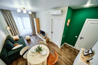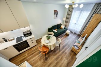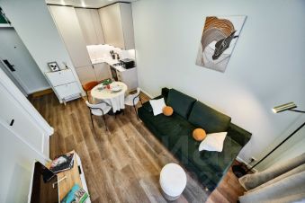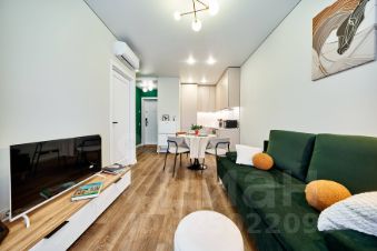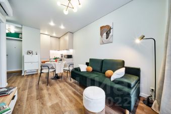 Площадь: 32 кв.м. Современная планировка: объединенная кухня-гостиная и отдельная спальная зона.