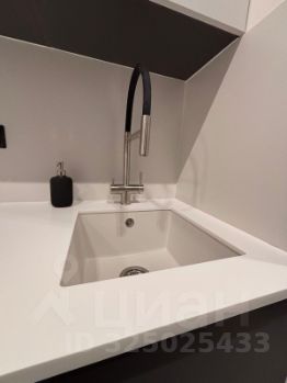 Кухня: встроенная, с тонкой современной столешницей из искусственного камня, мойкой подстольного монтажа и встроенным полноразмерным холодильником. Посудомойка. Индукционная варочная панель, фильтр питьевой воды.