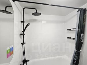 Санузел совмещенный (3,6кв.м) укомплектован стирально-сушильной машиной, душевой системой с тропическим душем, качественными черными смесителями.
