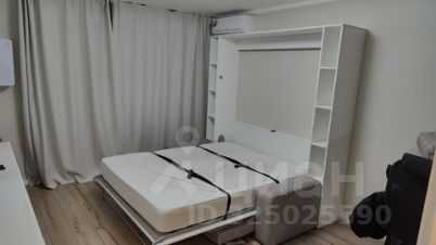 Современная кухня, спальная зона с кроватью-трансформером, полноценное рабочее место и много мест для хранения.