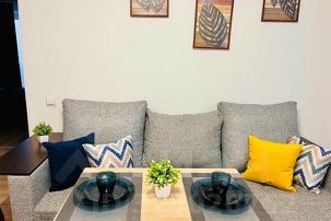 Квартира подходит для проживания 6 гостей: двуспальная кровать, два двуспальных дивана.