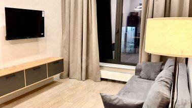 Квартира с дизайнерским ремонтом, в комнатах есть мебель, которая создаёт атмосферу уюта и стиля. Современная техника включает кондиционер, холодильник, посудомоечную машину, телевизор и стиральную машину. В ванной комнате установлена душевая кабина. Все условия для комфортного проживания созданы.
