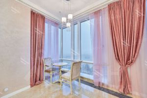 Панорамные окна открывают захватывающие виды на знаковые достопримечательности столицы, включая Воробьёвы горы, МГУ и башни "Москва-Сити".