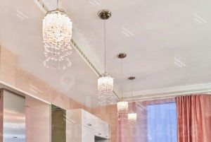 Элегантные подвесные люстры и декор из стекла придают обстановке стильный и уютный вид.