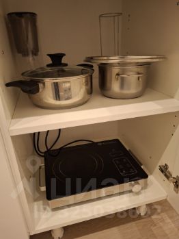 В студии есть все для комфортного проживания. Есть набор посуды, плита, микроволновая печь, холодильник с морозильной камерой, стиральная машина, а также шкаф, комод, стол, стул и двухспальный диван. Могу предоставить телевизор, комплект постельного белья и полотенца.