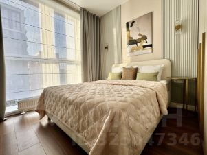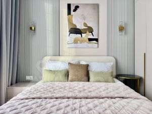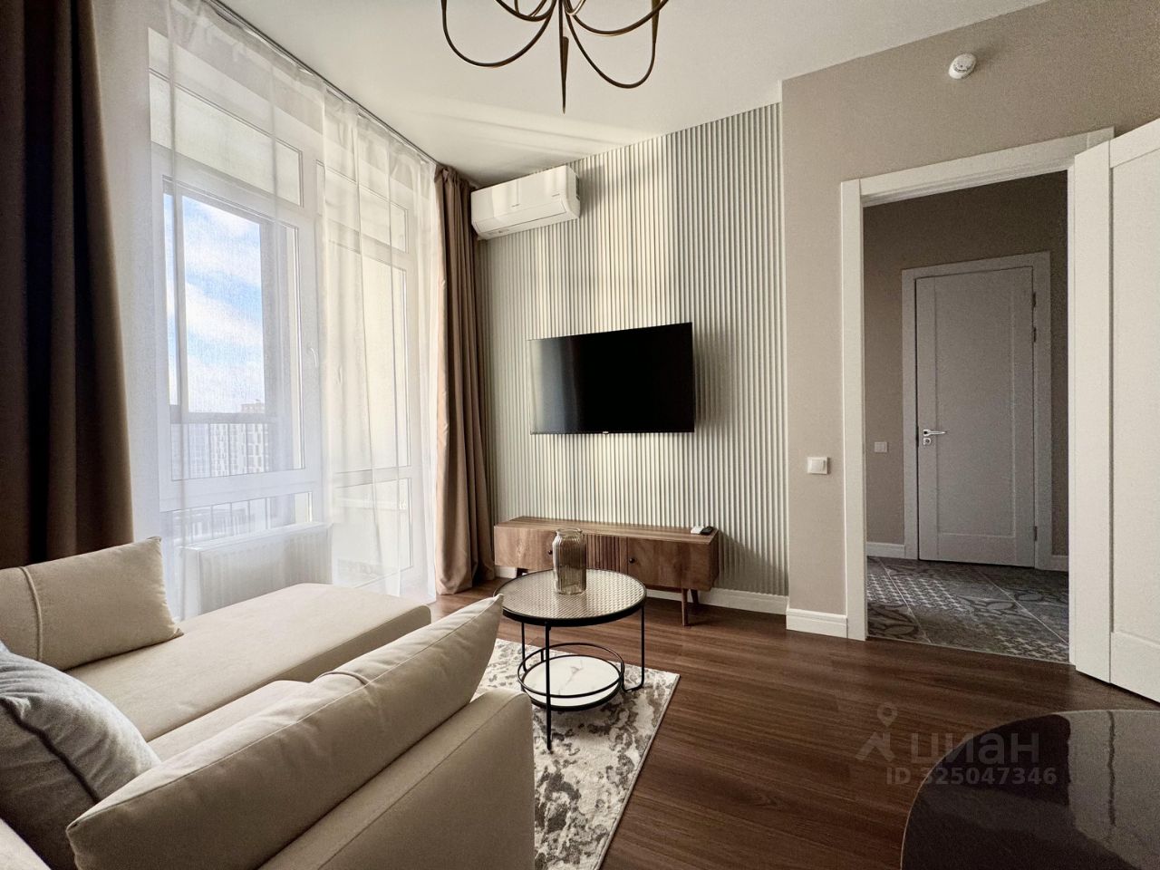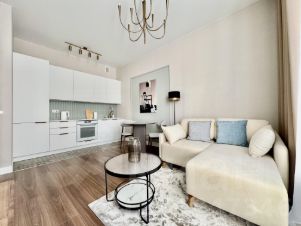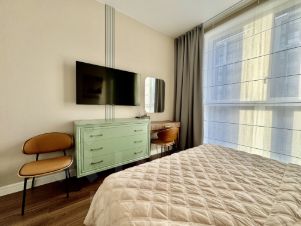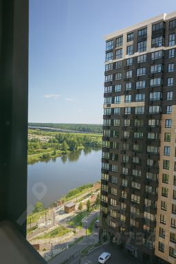 Стильная 2-комнатная квартира с видом на реку, площадью 38,4 м², расположенная в новом доме бизнес-класса на 12-ом этаже ЖК Прокшино, рассчитана на размещение до 3-х гостей и оснащена одной двуспальной кроватью и диваном.