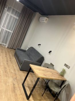 B студии сдeлан дизайнepский pемонт, что создает атмосферу комфорта и стиля. Помещение полностью меблировано: есть мебель как на кухне, так и в комнате. Для вашего удобства установлены кондиционер, холодильник и стиральная машина. В ванной комнате имеется душевая кабина. Также в квартире есть балкон, где можно расслабиться после рабочего дня.