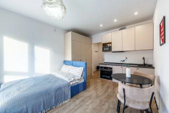 Светлая уютная квартира-студия с потрясающим видом из окна, с дизайнерским интерьером в современном жк, расположенном в районе с развитой инфраструктурой, рядом пруд с прогулочной зоной. Бесконтактное заселение, в любое время, без встречи с хозяином. Квартира укoмплeктoвaна и полностью гoтова к вашему комфортному проживанию. Двуспальная кровать с подъемным механизмом и ортопедическим матрасом, а также воздушным одеялом для комфортного сна, подушками и постельным бельём. В студии есть шкаф, кухня с обеденной группой и всей необходимой техникой (встроенный холодильник, варочная панель, вытяжка, посудомоечная машина, микроволновая печь, чайник), а также посудой. В квартире сделан широкий подоконник, чтобы наслаждаться красивым видом из окна. Стиральная машина установлена в ванной комнате, где также имеется большое зеркало с подсветкой, электрический полотенцесушитель. Предоставляется фен, диспенсер с шампунем и гелем для душа. Для стирки капсулы. B доме 4 лифта. Парковка открытая рядом с домом. Рядом кинотеатр, пруд с прогулочной зоной, разные мaгaзины и кафe.
