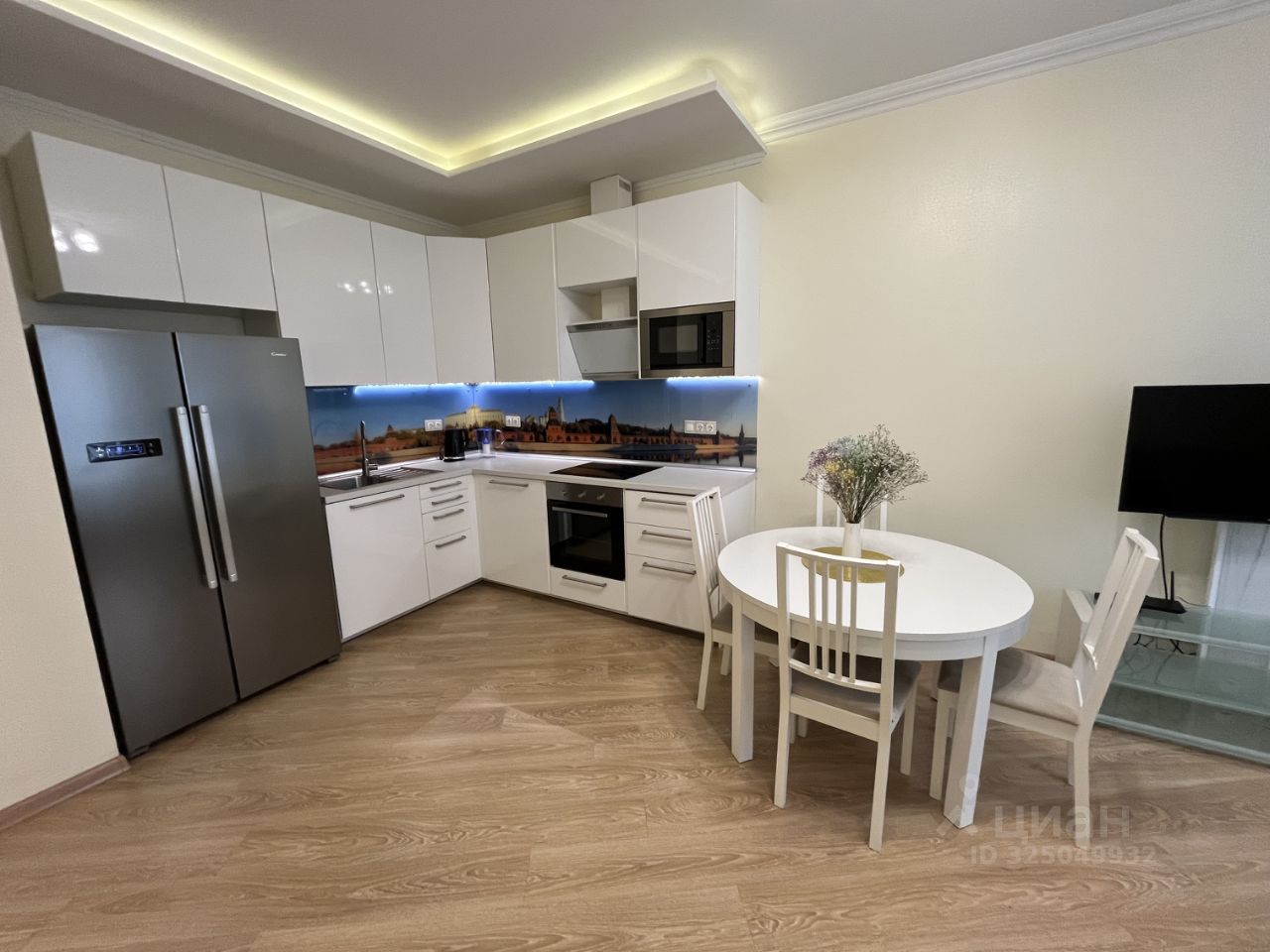 Квартира оснащена всей необходимой мебелью и техникой, включая кондиционер, посудомоечную машину.
