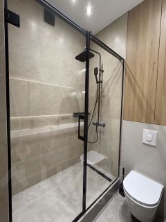 Два совмещённых санузла: один с душевой кабиной и один с ванной.