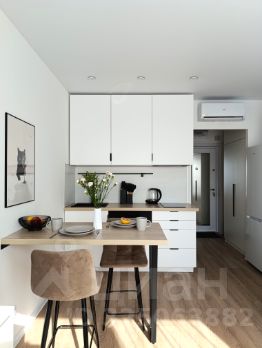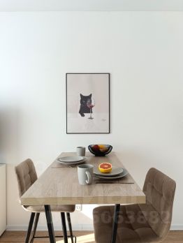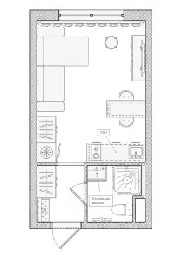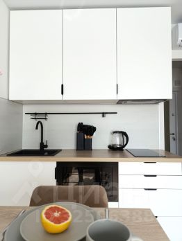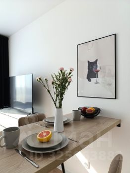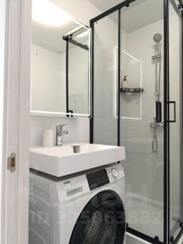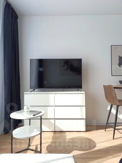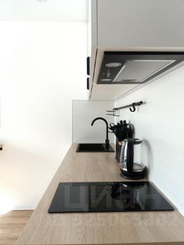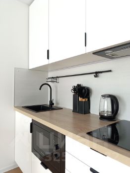 Бытoвая техника: кoндиционep, телевизop, вaрочная панель и вытяжка, встроенная СВЧ печь, холодильник, электрический чайник, стиральная машина.