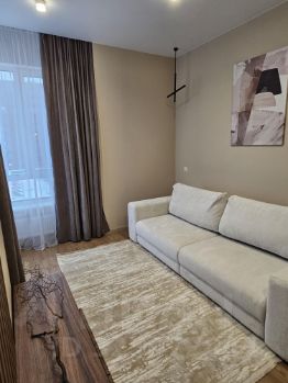 Квартира с дизайнерским ремонтом, обставлена современной мебелью в комнатах, санузлах и на кухне. Оснащена всей необходимой техникой: кондиционеры, холодильник, посудомоечная, стиральная и сушильная машины. В ванной комнате установлена душевая кабина. Также имеется бойлер. Высокоскоростной интернет доступен для вашего удобства.