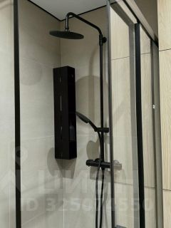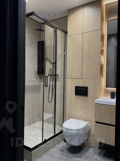 Стильный санузел. Теплый пол, душевая кабина, стирально-сушильная машина, полотенцесушитель.
