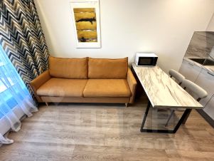 В квартире сделан качественный евроремонт. Пространство студии грамотно зонировано, что делает ее очень уютной и функциональной. В комнате и на кухне есть вся необходимая мебель. Квартира оснащена современной техникой: кондиционер, холодильник, посудомоечная и стиральная машины, а также телевизор. В ванной комнате установлена душевая кабина. Окна квартиры выходят во двор, поэтому здесь всегда тихо и спокойно.