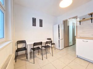 Квартира просторная - не загромождена мебелью. Большая кухня 10 метров, с кухонным гарнитуром, оборудованная техникой посудомоечная машина, эл.плита с духовым шкафом, вытяжка, холодильник.