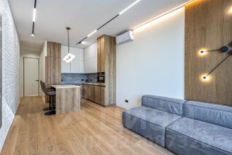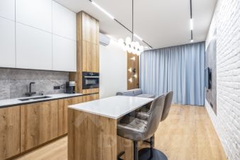 В комнатах уложена доска из натурального дуба Hain (Германия) - без химических добавок, обработан Eco маслом. На полу и в спальне сделана шумоизоляция. Радиаторы Guardo (Италия) с регулировкой уровня нагрева помещения. Кухня с островом Leicht (Германия) Техника на кухне Bosch serie 8, плита с беспроводным датчиком температуры, встроенные духовка/микроволновка и посудомоечная машина 60 см. Холодильник Liebherr c увеличенной зоной свежести, электродоводчик.