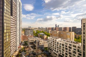 Окна на две стороны. Две спальни на Шмитовский проезд и далее на реку, кухня-гостиная во двор. В каждом помещении отдельный кондиционер, электрические шторы - блэкаут, панорамные окна. Разные сценарии освещения, трековые светильники Центрсвет. Напольное покрытие в санузлах плитка и сантехника Porcelanosa.