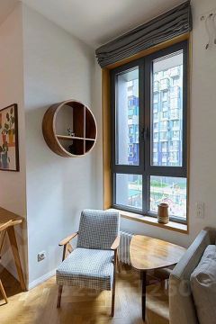 Окна квартиры выходят во двор, что обеспечивает тишину и спокойствие.