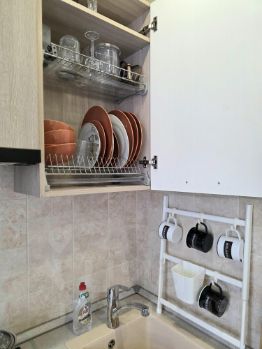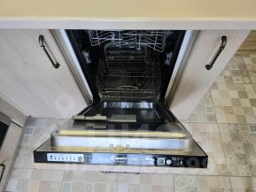 В квартире две комнаты: гостиная и спальня, где установлен удобный для сна раскладной двухместный диван. Кухня полностью укомплектована современной техникой: варочная панель, духовка, холодильник, посудомоечная машина и микроволновая печь. Санузел раздельный, в ванной стиральная машина.