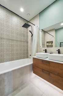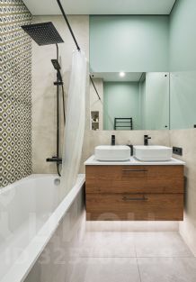 Отдельная ванная комната с ванной (villroy&boch), двумя раковинами и тёплым полом.