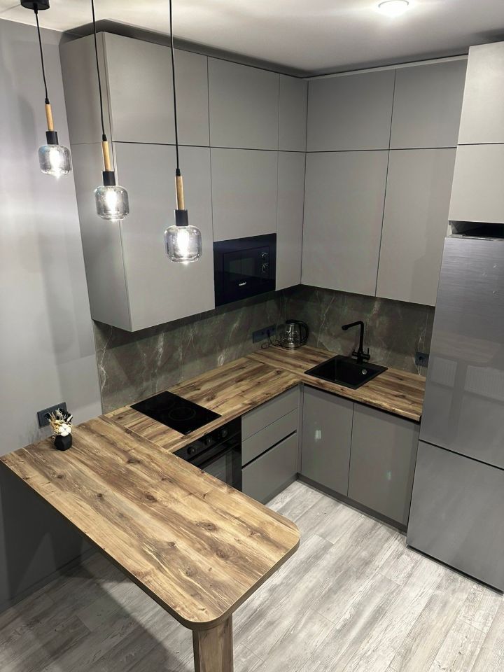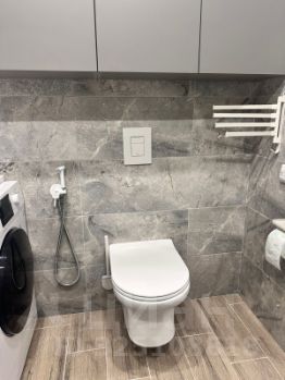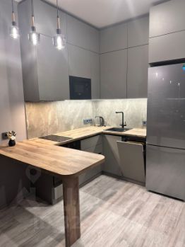 Большая и стильная ванная комната совмещает ванну и душевую зону, отделенную стеклянной ширмой. Здесь же размещена современная стиральная машина с функцией сушки. Кухня радует эргономичной планировкой и полным набором новой встроенной техники: холодильник, индукционная панель, духовой шкаф, посудомоечная машина и СВЧ-печь. Многоуровневая подсветка позволяет гибко менять атмосферу — от яркой рабочей до уютной вечерней.