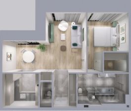 - В квартире есть постирочная зона со стиральной машиной и сушильной машиной;