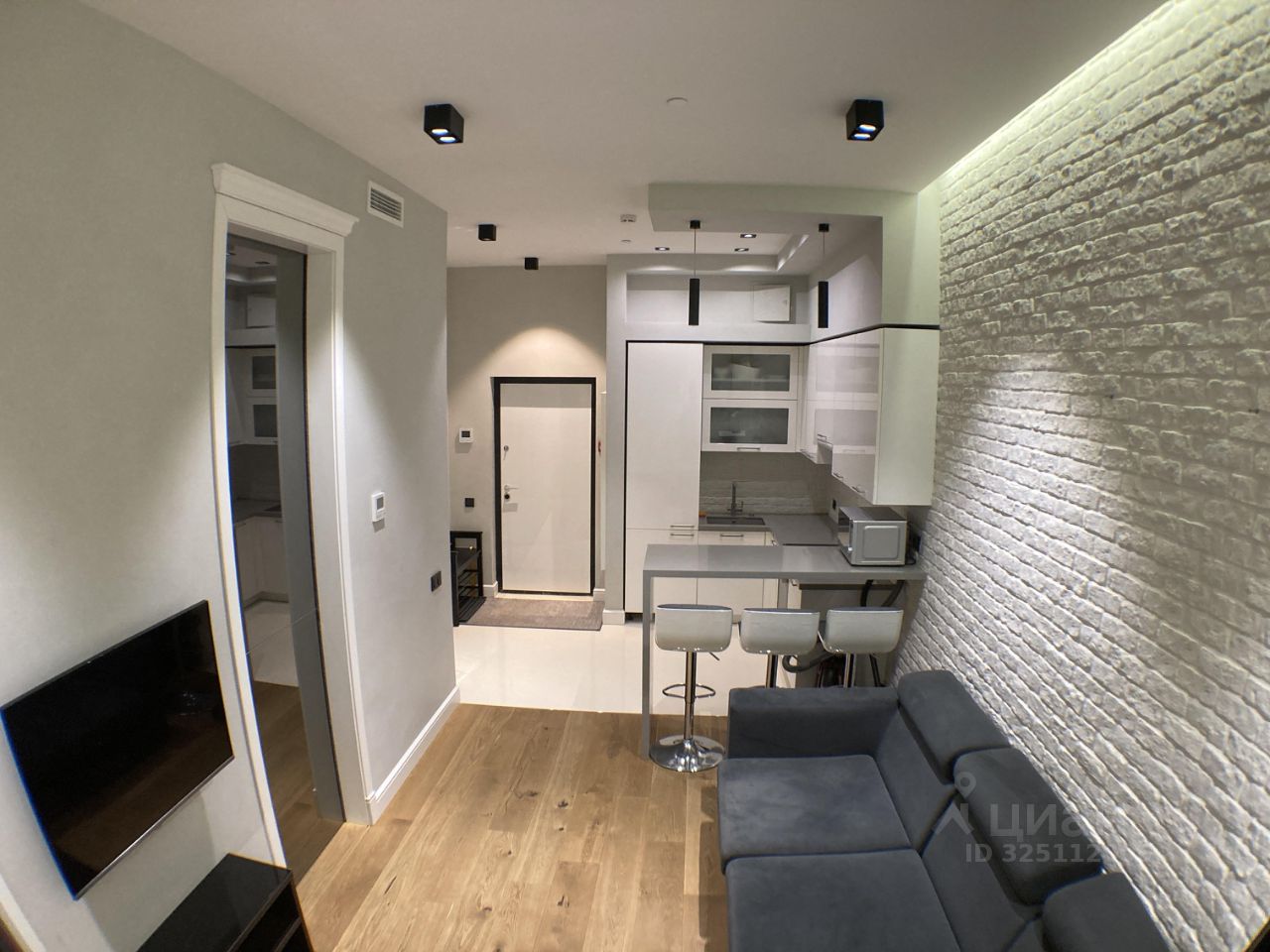 Апартамент полностью укомплектован современной мебелью. Установлена встроенная кухня с премиальной бытовой техникой, включая духовой шкаф и посудомоечную машину. Капельная кофемашина для доброго утра.
