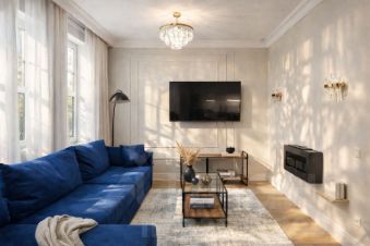 Планировка: просторная и уютная кухня-гостиная, изолированная спальня с гардеробной, совмещённый с/у с ванной