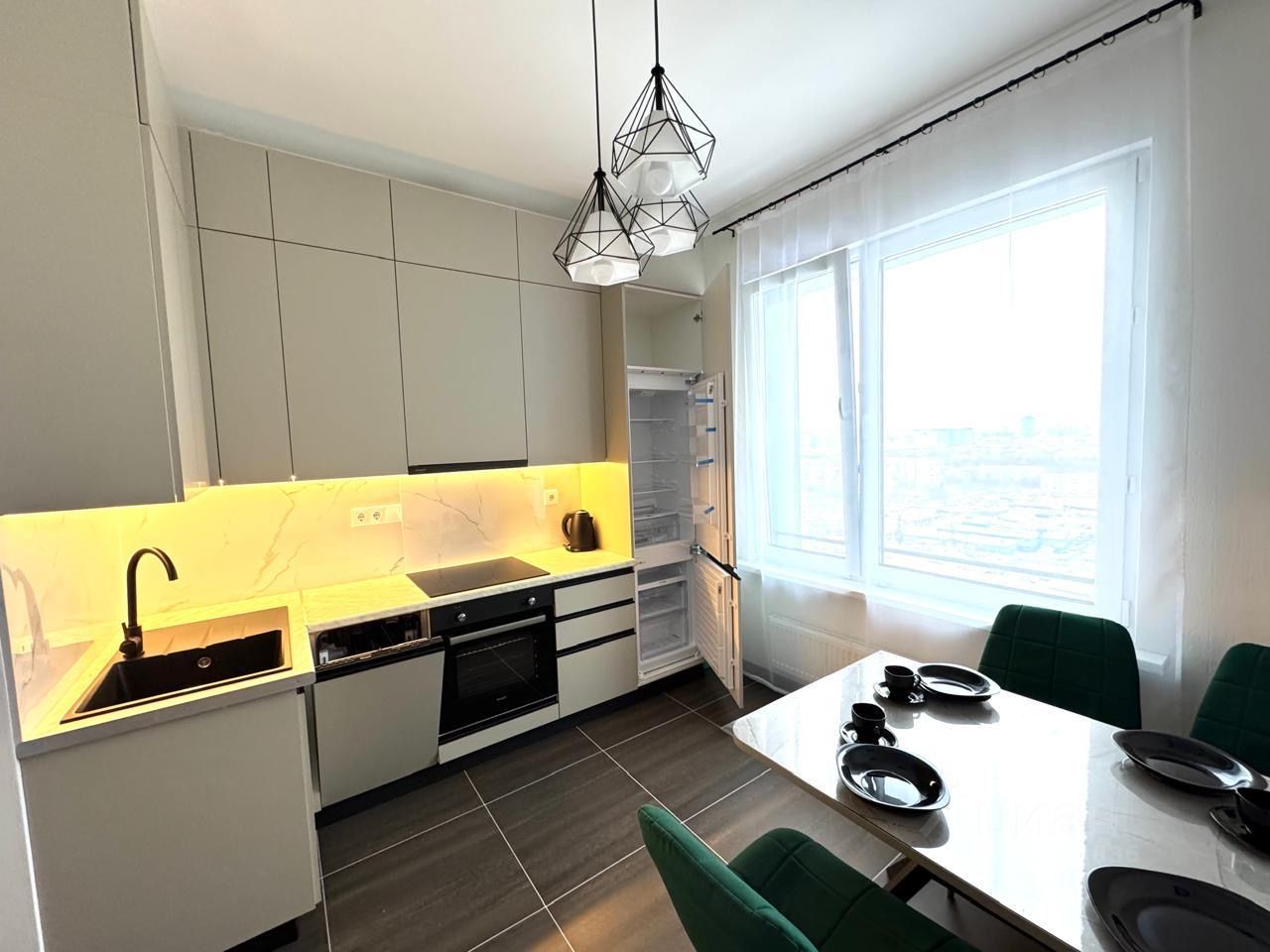 квартира с дизайнерским ремонтом предлагает современный комфорт и уют. Прекрасно оборудованная кухня с мебелью и техникой: установлены холодильник, посудомоечная машина и кондиционер.