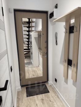 На 1 этаже расположен шкаф, кухня, обеденный стол (раскладывается на 2 человека). На 2 этаже расположен рабочий кабинет, спальное место. Есть еще свободное место для перспективного расположения мебели. Может по согласованию приобретено будущему арендатору на его вкус.